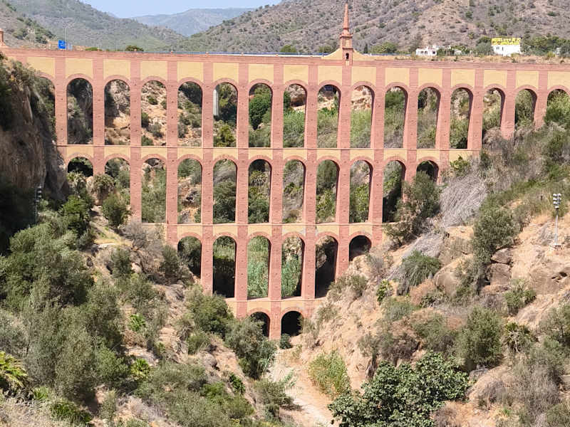 Wer die Höhle von Nerja besucht hat, dem kann man empfehlen, diesen tollen Aquadukt einen Besuch abzustatten. Er wurde Anfang des 19. Jahrhunderts zur Wasserversorgung der Zuckerfabrik in Maros gebaut. Er liegt ca. 5 - 10 Minuten zu Fuß von der Tropfsteinhöhle entfernt. Wer mit dem Auto unterwegs ist findet an der Straßenseite Parkplätze. Ein Fotostopp lohnt sich auf jeden Fall. Fußgänger müssen die Straße unter der Autobahn entlang gehen und sich dann am Kreisverkehr nach rechts wenden. Am Kreisverkehr befindet sich auch eine Bushaltestelle, sodass Gäste, die mit dem Bus unterwegs sind nicht zur Höhle zurück laufen müssen.