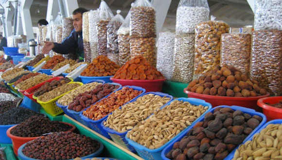 Es gibt mehr als 15 große Basare in Taschkent, einer davon ist der Alayski Basar neben der Kukeldash-Medrese – schön, groß, laut, und bunt! Es gibt alles an frischen Produkten zu kaufen, was das Herz begehrt: Obst, Gemüse, Gewürze, alle Varianten von Fleisch, frischer Fisch, Milchprodukte und Blumen. Unsere usbekische Reiseleiterin erklärte, dieser Basar sei der modernste und am besten ausgestattete Markt von Taschkent. Die Reihen der Marktbuden sind lang, auf mehr als 2.500 Ständen werden Produkte von höchster Qualität angeboten. Früchte wie Äpfel, Tomaten, Paprika und Zucchini werden sorgfältig poliert (die Lappen dafür darf man sich natürlich nicht näher anschauen) und in ansprechender Weise aufgestapelt. Mehr als 200 Sorten Äpfel und Granatäpfel werden angeboten, aus 40 verschiedenen Anbaugebieten. Matschige Tomaten, verwelkte Gurken, verschrumpelte Äpfel oder anderes in dieser Richtung, wird man hier nicht finden. Ein typischer orientalischer Markt, voller angenehmer Gerüche, voller Flair, mit freundlichen Menschen, die uns anlachten und zum Probieren aufforderten – einfach sehenswert!