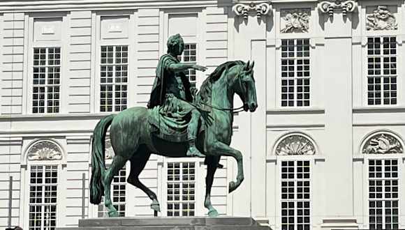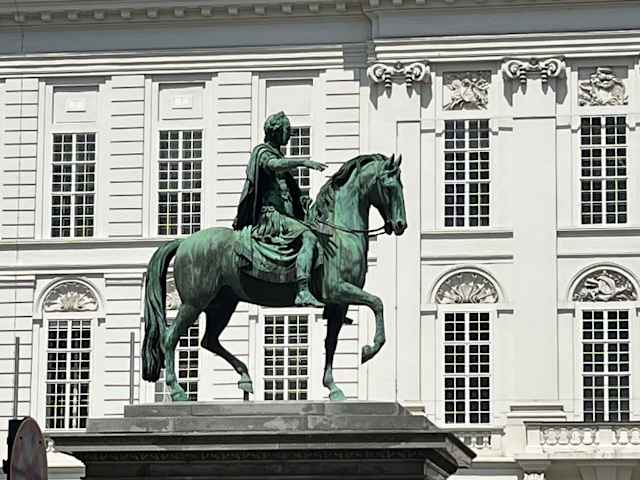 Das Museum Albertina befindet sich in einem schönen Gebäude, dem Palais Erzherzog Albrecht (am Albertinaplatz). Als wir im Sept. 2018 hier waren, fand eine Claude Monet Ausstellung statt, welche noch bis zum 06. Jan. 2019 gehen soll. Zu diesem Zweck war die Außentreppe mit dem Bild „Junge Mädchem im Boot“ von Claude Monet verschönert. Über die vorgenannte Außentreppe kommt man hoch zu der Terrasse, von der auch der Zugang zur Albertina ist. Auf der Terrasse ist das Reiterdenkmal von Erzherzog Albrecht. Von hier hat man einen schönen Ausblick auf die Gebäude der Umgebung. Wer nicht in das Museum möchte, sollte nach meiner Meinung trotzdem zum Albertinaplatz kommen und hoch auf die Terrasse vom Palais Erzherzog Albrecht gehen (übrigens: dieses Gebäude ließ die Kaiserin Maria Theresia errichten).