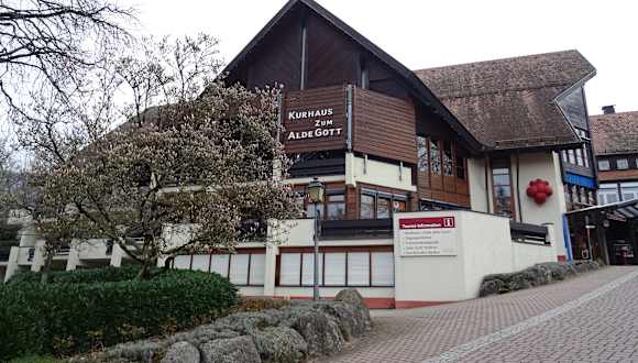 Das Kurhaus Zum Alde Gott war sonntags nur im Bereich des Foyers geöffnet - hier findet man jede Menge Infomaterial zu Sasbachwalden und der Region (Ausflugsmöglichkeiten, Wandern etc). Ein paar Personen saßen bei unserem Besuch auch in einem kleinen Lesesaal. Freies WLAN vorhanden. Öffentliche Toiletten ebenfalls. In der Nähe befindet sich ein großer Parkplatz welcher sich ideal für einen Stopp eignet.