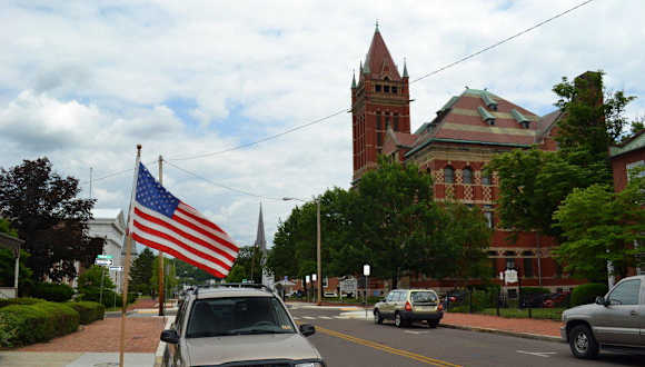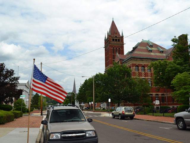 Das Allegany Courthouse liegt im Westen der historischen Innenstadt von Cumberland, an der südlichen Seite der Washington Street, dem so genannten Prospect Square. Wer mit öffentlichen Verkehrsmitteln zum Gerichtsgebäude kommen möchte, der sollte idealerweise mit dem Bus der Green Line oder der Yellow Line bis zur Haltestelle "Kensington Algonquin" fahren, von der es etwa 150 Meter bergan sind. Alternativ ginge auch die Haltestelle "Sheetz Greene Street“, von der aus es etwas mehr als 300 Meter sind, jedoch ließe sich hierbei ein Besuch des Gerichtsgebäudes mit einem Besuch von George Washingtons Headquarters im Riverside Park in der Greene Street kombinieren. Wer hingegen mit dem Auto unterwegs ist, der kommt leicht über die Interstate I-68 und deren Abfahrt 43B in die Innenstadt. Auf der West Harrison Street nach links abbiegen und gleich wieder nach rechts auf die North Mechanic Street. Nach etwa 200 Metern biegt man nach links in die Baltimore Street ein, die über den Wills Creek direkt in die Washington Street führt. Nun gilt es nur noch, einen Parkplatz am Straßenrand zu finden. Wenn man Cumberland besichtigen möchte, führt ein Weg am Allegany County Courthouse praktisch nicht vorbei. Es gehört schon seit vielen Jahren mit zu den bedeutendsten Gebäuden der Stadt und prägt deren Kulisse. Nicht zuletzt aufgrund der Gebäude der unmittelbaren Umgebung, wie beispielsweise die Emmanuel Parish of the Episcopal Church, die ebenfalls ein beliebtes Fotomotiv ist und das Stadtbild entsprechend prägt. Preislich gehört das Gebäude mit zu den Highlights, da die Besichtigung nichts kostet. Allerdings beschränkt sich diese auf die Fassade, da das Gerichtsgebäude nach wie vor als solches genutzt wird. Hier ist aber eben auch die Fassade das wirklich Sehenswerte. Die Architektur des Allegany Courthouse gefällt mir sehr gut und erinnert mich entfernt an die Architektur des Kremls in Moskau. Die rote Fassade und der markante Turm des Gebäudes stechen dabei besonders ins Auge. Dieser ragt nahezu mittig aus dem Gebäude heraus und verfügt direkt beim Übergang zum Turmdach in den vier Ecken über so etwas wie kleine zusätzliche Türmchen, deren Dächer farblich zum eigentlichen Dach einen deutlichen Kontrast bilden. Auf den ersten Blick könnte man das 1893 erbaute Gerichtsgebäude zunächst vielleicht sogar für eine Kirche halten. Es thront majestätisch über der Stadt und bietet einen herrlichen Blick über Cumberland, den Wills Creek im Nordosten und den Potomac River im Süden. Alles in allem ist das Gebäude sehr gut erhalten und man merkt ihm nicht wirklich an, dass bereits über hundert Jahre alt ist. Da es immer noch in Betrieb ist, wird es entsprechend gewartet und gepflegt. Die Mauern wirken, als seien sie für die Ewigkeit errichtet worden. Historisch ist das Gebäude zwar von Bedeutung für Cumberland, kann sich diesbezüglich aber nicht mit der Railway Station oder dem Rathaus messen lassen. Zu erwähnen ist aber auf jeden Fall, dass sich das Gebäude auf dem Grund des ehemaligen Fort Cumberland befindet, zu dessen Besatzung einst auch George Washington gezählt hat. Dessen einstiges Hauptquartier kann man Fuß des Hügels in der Greene Street besichtigen. Das erste Gerichtsgebäude stand hier bereits 1793, konnte jedoch erst sechs Jahre später bezogen werden und fiel 1893 einem Feuer zum Opfer.