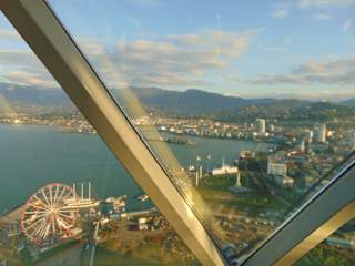 Der Alphabetic Tower ist ein sehr moderner, 130 m hoher Aussichtsturm, welcher sich im “Miracles Park“ an der hafenseitigen Strandpromenade in der georgischen Schwarzmeermetropole Batumi befindet. Er wurde von einem spanischen Designer entworfen und spiegelt die "DNA " des in der Welt einmaligen georgischen Alphabets wieder. Seine 33 Buchstaben sind außen angebracht. Für 15 Lari kann man ihn (als Erwachsener) besichtigen - der Betrag ist unten an der Kasse zu zahlen - dann gelangt man per Aufzug mit einer Zwischenstation und ein weiteren Aufzug nach ganz oben. Es befinden sich in der Glaskuppel ein Restaurant und auch ein Café. Für das, was das Ticket bietet, finde ich den Eintrittspreis von 15 Lari etwas überhöht.