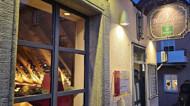 Das Redstaurant "Alte Mainmühle" liegt direkt am Main und der Alten Mainbrücke. Es ist ein gehobenes Restaurant aber gutes Essen. Eine Resvervierung wird empfohlen. Der Eingang ist eher unscheinbar. Man siktzt sehr gut auf beiden Balkonen welche zum Main hingewandt sind. Einen Auszug der guten Weinkarte findet man neben dem Eingang auf einer Tafel. Ein Lokal, welches man auch nur für einen Schooppen besuchen kann.