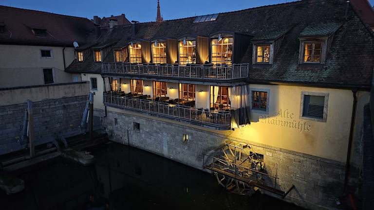 Die "Alte Mainmühle" liegt direkt am der alten Mainbrücke in einem wunderschönen Gebäude, mit intakter Wassermühle. Das Restaurant ist tgl. von 10 - 24 Uhr geöffnet Weitere Infos hier