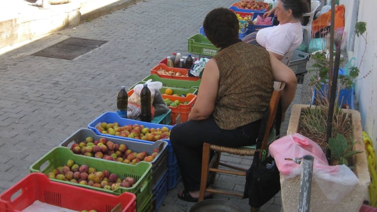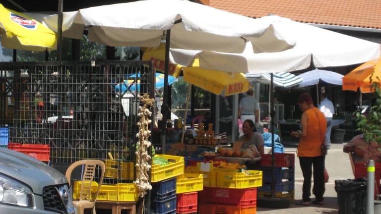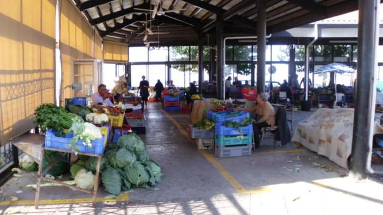 Wer hofft, in der Markthalle etwas zu finden, dass einem Markt entspricht, wird leider enttäuscht. Nur wenige Einheimische bieten unter oder vor der Überdachung Obst und Gemüse an - man kann die Händler an den Fingern von "ein bis zwei Händen" abzählen. Eigentlich sehr schade ! Allerdings findet man immer mindestens zwei wirklich authentische ältere Marktfrauen, die sich mit großem Vergnügen fotographieren lassen. Ansonsten... rechts und links und dahinter ein Souvenirshop neben dem anderen. Lichtblick: Der Blick von oben auf Paphos. Darum: Trotz des nicht vorhandenen Marktes einfach mal hoch fahren.