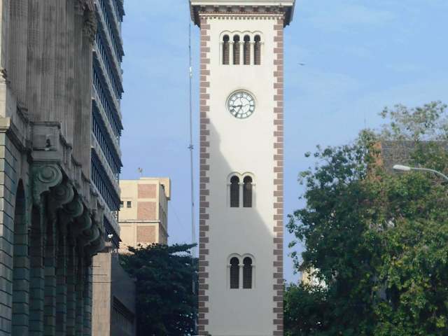 Der elegante viktorianische Turm an der Chatham Street in Colombo wurde Mitte des 19. Jahrhunderts als Leuchtturm gebaut, aber die Stadtentwicklung ließ immer mehr und immer höhere Gebäude rund um den Leuchtturm entstehen, so dass er seinen Zweck nicht mehr erfüllte. Also wurde er 1914 zum Uhrenturm und ziert noch heute das Stadtbild von Colombo.