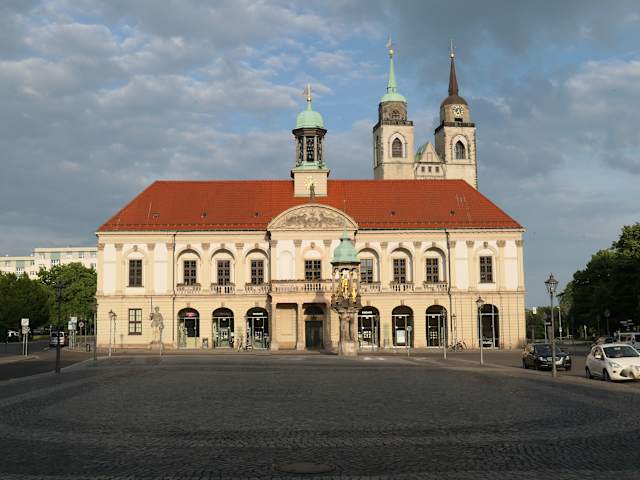 Im Herzen der Innenstadt von Magdeburg liegt der Alte Markt, seit dem frühen Mittelalter Markt- und Handelsplatz der einstigen Hansestadt. Der repräsentativste Bauzeuge im einstigen Bürgerbezirk ist der zweigeschossige Bau des Rathauses an der Ostseite des Alten Marktes. Dieser wurde zwischen 1691 und 1698 im barocken Stil errichtet. Im Nordteil des Gebäudes sind Gewölbe aus dem 12./13. Jahrhundert (u.a. im Ratskeller) gefunden worden. Umrahmt wird der Alte Markt von Bürger- und Geschäftshäusern wie im Westen der moderne Bau der Sparkasse und einigen Restaurants. Emsiges Treiben herrschte bei unserem Besuch auf dem Platz vor. Gruppen, die sich von Stadtführern die die bedeutendste Sehenswürdigkeit, den Magdeburger Reiter auf dem Alten Markt erklären ließen. Es ist das älteste frei stehende nachantike Reiterstandbild auf deutschem Boden. Das Original befindet sich zwar im Kulturhistorischen Museum der Stadt, aber die Kopie aus dem Jahre 1966 vermittelt immer noch die Bedeutung dieses Kunstwerks. Weitere Kunstwerke sind die Hirschsäule mit dem eine Goldkette tragenden Hirsch, der Eulenspiegel Brunnen, das Denkmal für Otto von Guericke und die Figur des schwerttragenden Rolands am Eingang zum Ratskeller. Der Alte Markt ist sehr gut mit dem öffentlichen Nahverkehr erreichbar (Straßenbahn), Autofahrer parken am Besten im Parkhaus des Allee-Centers. Der Markt ist mit öffentlichen Verkehrsmitteln sehr gut zu erreichen. Weitere Parkmöglichkeiten in der Julius-Bremer-Straße oder hinter dem Karstadt-Einkaufszentrum.