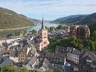 Bacharach besitzt eine der schönsten Altstadtkerne am Mittelrhein. In der kleinen Stadt reihen sich alte Fachwerkhäuser, mittelalterliche Kirche wie an einer Kette auf. Die Stadtmauer gehört zu den besten erhaltenen Befestigungen im Rheintal. Und über allen thront die mächtige Burg Stahleck, die heue eine Jugendherberge ist. Nette Restaurants und Weinstuben muss man auch nicht lang suchen