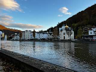 Im Herbst 2017 waren wir in Bad Ems. Es mag vielleicht der späten Jahreszeit geschuldet sein – der Park wirkte etwas trostlos, die Cafes/Gaststätten hatten ihre Außenaktivitäten eingestellt -, dass die Stadt insgesamt trotz des guten Wetters recht verlassen wirkte. Viele der alten Hotels sind aber noch in einem recht guten Zustand; dadurch verbessert sich das Gesamtbild erheblich. Weitere markante Gebäude, wie z.B. die alte russisch-orthodoxe Kirche, das Spielcasino oder die Römertherme bestätigen diesen Eindruck. Weiter erwähnenswert wäre auch noch das Beatles-Cafe „Yellow Submarine“ mit dem angeschlossenen Beatlesmuseum sowie die Kurwaldbahn, eine Standseil-Bergbahn zur Bismarckhöhe. Insgesamt gesehen versprüht die Kurstadt dennoch einen etwas verblichenen Charme. Viele Geschäfte in der Haupteinkaufsstrasse und in Bahnhofsnähe stehen leer, bzw. dienen Galerien oder Antiquitätenhändlern als reine Ausstellungsfläche. Und was verblieben ist, ist auch nicht das Nonplusultra der deutschen Geschäftswelt. Verglichen mit anderen Kurstädten hat m.E. Bad Ems verloren oder vielleicht war das Flair der Konkurrenz auch nie vorhanden. Etwas anders sieht es im Spätsommer/Anfang September eines jeden Jahres aus, wenn der alljährliche Blumenkorso - Deutschlands größte und unbestritten schönste rollende Blumenschau – zehntausende Besucher aus ganz Europa nach Bad Ems lockt. Über 1,5 Millionen Dahlien und rund 300.000 Schnittblumen zieren mehr als 30 monumentale Motivwagen. Vielleicht ein Grund, Bad Ems nochmals zu besuchen! Als Fazit ist festzuhalten – wer in der Nähe ist, kann Bad Ems durchaus besuchen. Aber aus meiner Sicht ist es kein Muss. Und es sollte in den Sommermonaten sein, wenn bei gutem Wetter auch Einiges im Freien stattfinden kann.