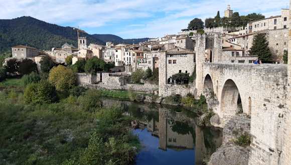Besalú ist eine wunderschöne Kleinstadt mit einer prachtvollen mittelalterlichen Architektur. Das Städtchen liegt sehr malerisch am Fuße der katalanischen Pyrenäen, etwa 35 Kilometer nordwestlich von der Provinzhauptstad Girona entfernt ; es steht komplett unter Denkmalschutz. Das Wahrzeichen von Besalú ist die imponierende Steinbogenbrücke über dem Fluss Fluvia – Pont Vell –, die aus dem 11.-12. Jahrhundert stammt. Der Zugangsweg in die reizende Altstadt führt über diese Brücke. Aber Besalú hat noch viel mehr zu bieten: Pittoreske Gassen und Arkadengänge, gepflegte Herrenhäuser, ein unterirdisches jüdisches Badehaus, die Kirchen Sant Martí und Sant Vicenç aus dem 11. Jahrhundert, das alte Kloster Sant Pere, usw. Absolut empfehlenswert!