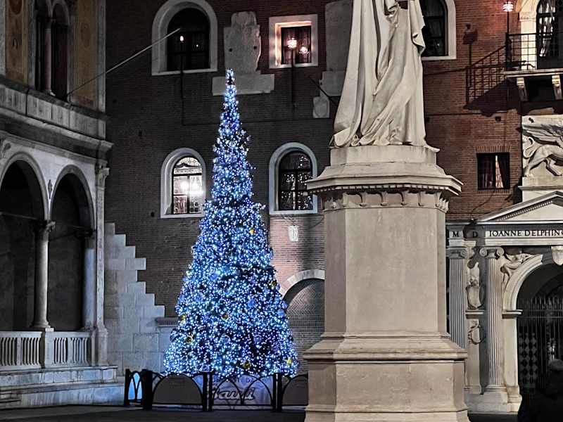 Am Sonntag machten wir einen kleinen Ausflug nach Venedig. Wir fanden einen kostenlosen Parkplatz in der Nähe des Arsenals direkt an der Scaligerbrücke. Über diese schlenderten wir nach Verona, unsere Söhne erkletterten Teile der alten Brücke und genossen die schönen Ausblicke. In nur wenigen Minuten waren wir an der Arena, welche zur Weihnachtszeit mit einer Art "Sternschnuppe" geschmückt war. Nach Besichtigung der Arena schlenderten wir über die Haupteinkaufsmeile zu Julias Haus. Vorher stärkten wir uns noch mit Pizzen in einem Lokal in der Via Mazzini. Das Haus von Romeo haben wir leider in der Kürze der Zeit nicht gefunden, gingen aber über die Scaliger-Gruften zurück zu unserem Ausgangspunkt.