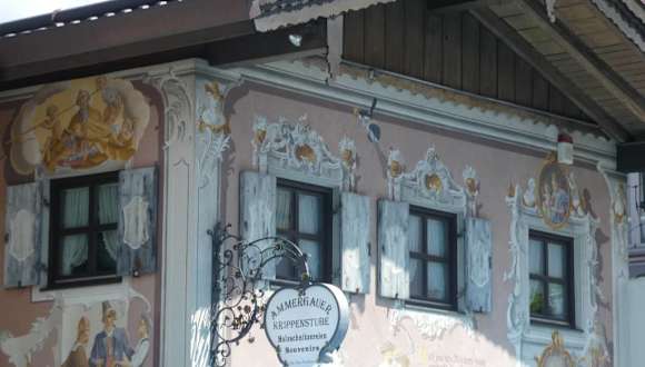 Die Ammergauer Krippenstube befindet sich in Oberammergau in der Dorfstraße 11. Hier findet man viele unterschiedliche Krippen und Krippenfiguren, Engel, Kreuze, Heiligenfiguren, aber auch Figuren von Clowns, Bergsteigern, Musikanten, Nachtwächter, Bauern und Bäuerinnen, Tieren usw. usw. Man sollte sich die Krippenstube durchaus einmal anschauen – man kann, muss aber nichts kaufen. Zudem weist die Ammergauer Krippenstube an den Außenwänden schöne, sehenswerte Fresken / Lüftlmalereien auf.