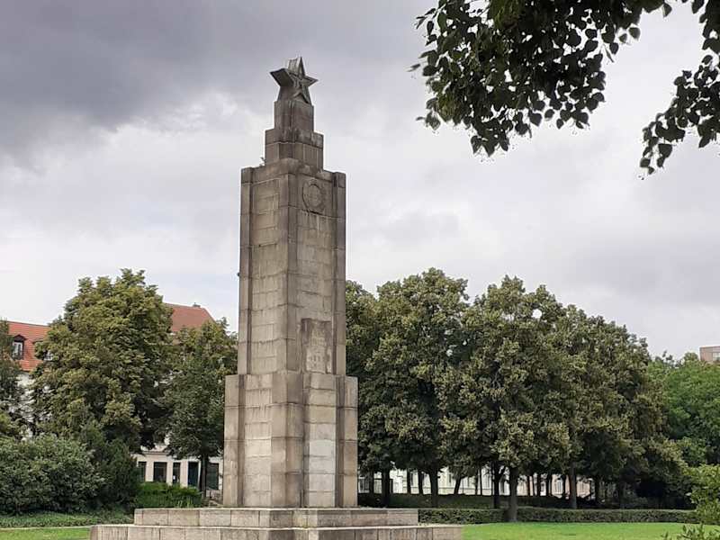 Das 1947 errichtete Ehrenmal für die gefallenen sowjetischen Soldaten steht im , dem einstigen Exerzierplatz von Frankfurt, das während der Preußenzeit Garnisonsstadt war.