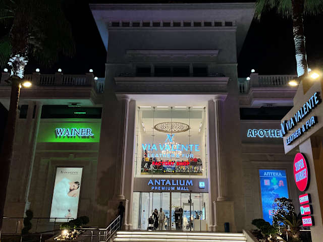 und von Innen auch! Hier wird wirklich angeboten, was das Shopping-Herz begehrt und noch dazu in einem netten Ambiente! Keine Verkäufer, die einen mit billigen Anmachsprüchen versuchen ihre minderwertige Ware anzudrehen, sondern Geschäfte mit gehobenem Stil. Wer bereit ist für Qualität und gute Ware ein paar Euro mehr zu bezahlen, ist hier genau richtig! Denn nach billiger Basarware sucht man hier vergebens! Wirklich empfehlenswert ist die Apotheke, da der direkte Preisvergleich mit den umliegenden Apotheken ergeben hat, dass man hier die fairsten und günstigsten Preise bekommt, ohne über den Tisch gezogen zu werden und ohne, dass der Preis nach Gesicht gemacht wird ;) Ebenso ein guter Shoppingtipp ist der Modeschmuck-Laden schräg gegenüber der Apotheke. Tolle Sachen für wenig Geld....da schlagen Frauenherzen schneller! Alles in Allem hält die tolle Optik des Antaliums -mit ihren vielen abendlichen Farbspielen- was Sie verspricht und ist auf jeden Fall einen Besuch wert!