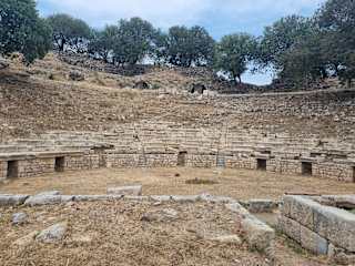 Teos ist eine Ausgrabungsgelände von einer ca. 4000 J. alten Stadt. Es ist wahrscheinlich auch älter als Efesos. Seit 3 Jh.v.Ch. war es Sitz eines Vereins -Techniten- die Vereinigung von Dichter, Musiker, Schauspieler, die fast jedes Jahr im Theater zur Ehrung der Stadtgottheit- Dionysos- die musikalische und dichterische Wettkämpfe vranstaltet haben, gewesen. In Teos stand auch die größte Dionysos Tempel der griechichen Welt, die von Architekten Hermogenes gebaut wurde. Hermogenes wurde auch in Efesos damals beschäftigt. Von Teos stammen auch der Dichter Anakreon und der Büchersammler Apellikon. Weil eine Reihe von der griechichen Inschriften von der 3 J.v. Ch. gut erhalten ist, konnte die Geschichte der Stadt gut nachvollziehbar sein- so auch ein Überfall der Piraten auf die Stadt und die Entführung einer Reihe von Bürger , die später frei gekauft wurden. Die Stadt ist ca. 40 Km. von Izmir und ca. 3-4 Km. von Ort Sigacik ( Hotel Euphoria und Atlantis ) entfernt. Es lohnt sich, wenn man in Sigacik übernachtet, zu den Ruinen zu Fuß zu gehen. Der Weg ist einfach, führt über wenig befahrene Straße vorbei an Olivenheinen und Obstgärten und dauert ca. 40 Min. Die Ruinen sind malerisch in grün goldenen Küstenlandschaft gelegen.Bei diesem Augenblick schlägt ein romantisches Herz bestimmt schneller. Zur Zeit ( 2014) wird die Gelände touristisch erschlossen. Es werden die Pfäden , die zu Sehenswürdigkeiten ( wie Dionysos Tempel, Theater , Agora u.s.w.) führen, gebaut. Auch das kleine Museum mit Restaurant sind zwar fertig gestellt, aber noch nicht offen. In Herbast kostet Eintritt noch nichts. Die Beschreibungstafel stehen auch schon überall. Zum Sehen sind die Ruinen von Dionysos Tempel, Odeon mit ein paar Sitzreihen, Reste von Agora, Akropolis und s. w. wie überall in antiken Städten.