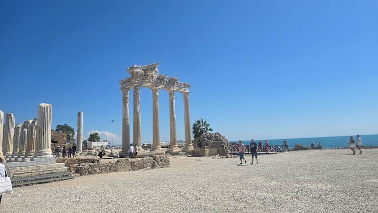 Die fünf rekonstruierten Säulen des Apollontempels sind ein beliebtes Ausflugsziel und Fotomotiv bei den Besuchern von Side. Erbaut wurde er im 2. Jhd. v. Chr. und dem Gott des Lichts Apollon geweiht, neben ihm befand sich ein größeres Bauwerk, der Tempel der Athene. Am Abend ist die beste Zeit für eine Besichtigung, man hat die Chance hat, den Sonnenuntergang hinter dem Tempel zu bewundern. Nachts wirkt der Tempel durch das angestrahlte Licht besonders malerisch. Verfasst von HolidayCheck