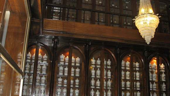 In der Calle Obispo im Herzen der kolonialen Altstadt von Havanna findet man ein Relikt aus dem 19. Jahrhundert, die "Farmacia y Droguería Taquechel". Dabei handelt es sich zum einen um eine Apotheke, die therapeutische und homöopathische Arzneimittel aus Kuba verkauft, und zum anderen auch um ein Museum. Beim Betreten der von Kristallleuchtern erhellten Räume fallen die mit Hunderten von bemalten Töpfen, Flaschen und Tiegeln aus Keramik bestückten hohen Mahagoni-Regale ins Auge. Davor stehen große, mit allerlei Inkredienzen für Heilmixturen gefüllte Porzellankrüge, die aus Frankreich stammen sollen. Auf allen Gefäßen wurde akribisch der Inhalt durch ein Bild oder entsprechende Beschriftung festgehalten. Nichts fehlt, weder die benötigten Instrumente noch alte Medizinbücher oder Skelette. Eine Apotheke, wie wir sie vielleicht noch aus unserer Jugendzeit kennen! Wenn man nichts kauft, entstehen keine Kosten.