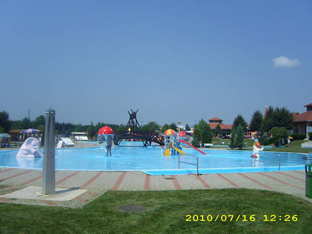 Ca. 75km von Balatonboglar Richtung Heviz entfernt, Eintrittspreis ca 12,50 für den ganzen Tag. Großzügiger Park mit einigen Rutschen wie Black Hole, Doppelrutsche mit reifen wo man zu zweit rutschen kann. Großes Wellenbecken wo jede volle Stunde die Wellen angemacht werden. Vielseitiges Kinderparadies wie Becken, Spielplatz. Mehrere Snackstände, saubere Sanitäranlagen, große Liegewiesen mit Sonnenschirmen.