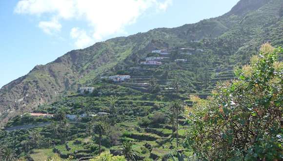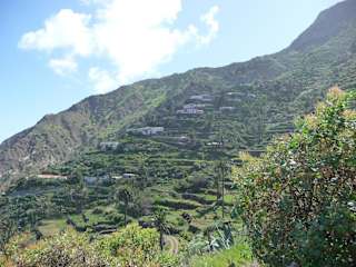 Arguamul liegt ganz im Nordwesten der Insel und ist (zur Zeit noch) relativ schwer zu erreichen, deshalb verirren sich auch nur wenige Touristen hierher. Auf dem Weg von Vallehermoso nach Epina führt kurz vor Epina eine schmale und teilweise unbefestigte Straße Richtung Norden zur Steilküste. Die Anfahrt hat uns einige Nerven gekostet, aber die Mühe hat sich gelohnt. Die Ausblicke auf den Atlantik sind toll und die Häuser der Ansiedlung schmiegen sich an einen sehr steilen Hang hoch über dem Meer. Über zahlreiche Serpentinen (die Straße ist sehr schmal -zum Glück hatten wir keinen Gegenverkehr) gelangt man zu einer Ansammlung von mehreren Gehöften unterhalb des Ortes. Von dort kann man auf einem Weg zur Playa de Arguamul runterwandern (ca. 120 Höhenmeter, recht anstrengend, aber sehr schön). Der grobe, steinig bis felsige "Strand" eignet sich aber nicht zum Baden (schon allein wegen der starken Brandung), trotzdem, die Landschaft ist wirklich spektakulär . Wenn man nicht den gleichen Weg zurück nach Epina nehmen möchte, kann man über die Streusiedlung von Tazo bis nach Alojera fahren. Die Schotterstraße hat viele Schlaglöcher und ist recht anspruchsvoll. Man fährt aber durch sehr fotogene, palmenbewachsene Täler.