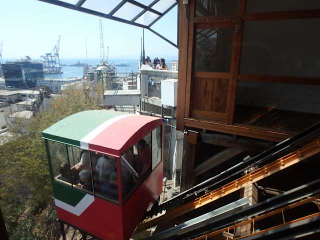 Valparaíso erstreckt sich über mehr als vierzig steile Hügel. Da lag es nahe, den Bewohnern den Auf- und Abstieg durch den Bau von technischen Hilfsmitteln zu erleichtern. Man errichtete hier deshalb vor mehr als 100 Jahren Schrägaufzüge - am Ende gab es mehr als dreißig der sog. Ascensores. Einige davon wurden restauriert und fahren jetzt wieder. Besonders lohnenswert ist u.E. die kurze Fahrt im Ascensor El Peral, der dreißig Höhenmeter zwischen dem Paseo Yugoslavo/Cerro Alegre und der Plaza Justicia/Plaza Sotomayor -zwei touristisch interessanten Punkten- überwindet. PS: Das alte Prinzip wurde jetzt in vielen südamerikanischen Städten wieder zum Leben erweckt, allerdings durch den Bau von Seilbahnen. Vorreiter sind Medellin/Kolumbien, El Alto-La Paz/Bolivien, Rio de Janeiro/Brasilien u.a.