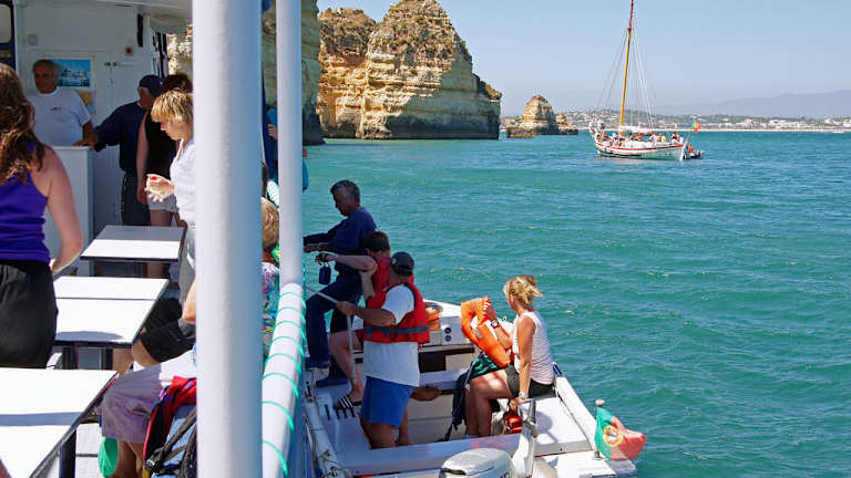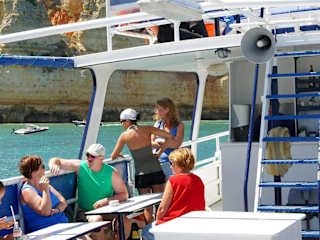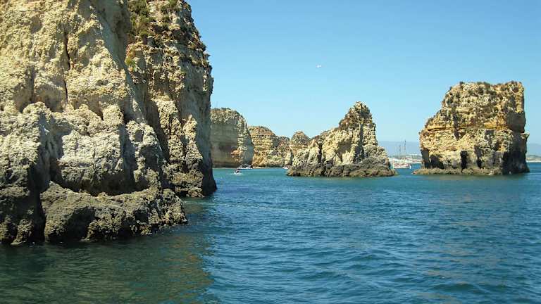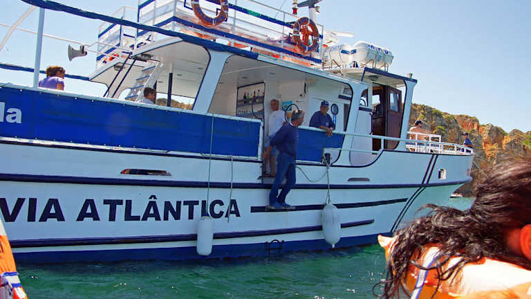 Die "Atlantica" ist ein kleineres Ausflugsschiff und liegt im Hafen von Lagos. Von unserer Reiseleitung erfuhren wir, dass man mit diesem Schiff eine Bootstour bis nach Sagres hin und zurück unternehmen kann. Um zehn Uhr ging die Fahrt los. Die beste Aussicht hat man vorne auf dem Bug. Langsam fährt die Atlantica aus dem Hafen hinaus und so hat man einen schönen Blick auf Lagos. Vorbei an den Felsformationen, dem Praia Dona Ana, Praia Do Camilo bis hin zum Ponta da Piedade. Dort wird dann umgestiegen auf kleine Fischerboote, mit denen man durch die wunderschönen Grotten fährt. Wieder auf der Atlantica, geht es vorbei am Praia Porto de Mos und weiter Richtung Sagres. Natürlich wurde auch für das leibliche Wohl gesorgt. Es gab Hähnchen mit Salat, Wein und Wasser. Andere Getränke konnte man sich kaufen, wie z. B. Kaffee u. s.w. Die vorbeiziehende Landschaft faszinierte mit ihren bizarren Felswänden, einsamen Buchten und Dörfern. Nach etwa vier Stunden kamen wir in Sagres an. Der Hafen ist schon sehenswert! Dort hatten wir über eine Stunde Aufenthalt. Man konnte bummeln gehen oder man setzte sich in ein Cafe auf der Anhöhe mit herrlichem Blick auf Hafen, Fischerbooten und dem Atlantik. Die Rückfahrt verlief schneller, da wir nicht mehr so nahe und langsam an der Küste vorbeifuhren. Gegen 16. 30 Uhr kamen wir wieder in Lagos an. Möchte noch erwähnen, dass die Reisebegleiterin auf dem Schiff äusserst freundlich war und uns alle Fragen über Portugal und dem Atlantik gerne und mit Freude beantwortet hat. Die Bootstour dauert 6 Std. und kostet pro Person 45 Euro.