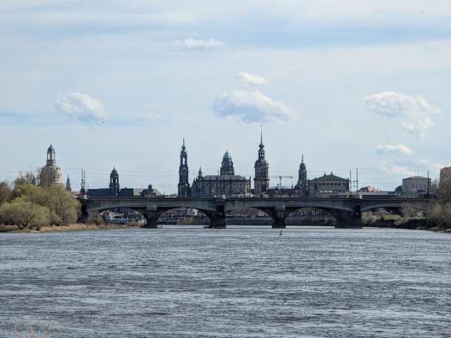 So schön diese Brücke auch ist, als wir in Dresden waren, wurde sie von Grund auf restauriert, ach was sage ich, sie wird vollkommen erneuert, d.h. der Weg über die Brückenpfeiler. Selbstverständlich sind wir auch darüber gegangen, denn den Blick auf das Altstadtpanorama wollten wir keinesfalls missen. Achtung der Fußweg teilt sich für Radfahrer und Fußgänger, manche nehmen Rücksicht , andere leider nicht.