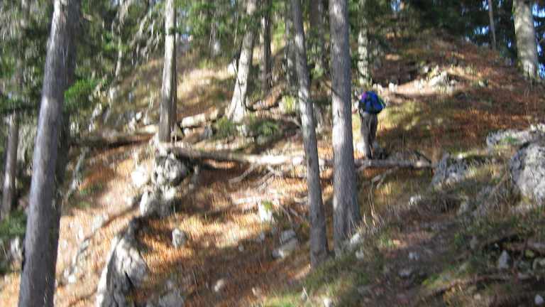 Der Ausgangspunkt unserer Wanderung von Fischhausen – Aurachköpferl – Schliersee war der Bahnhof von Fischhausen-Neuhaus. Die Ortschaften Fischhausen und Neuhaus gehören zur politischen Marktgemeinde Schliersee. Nicht weit vom Bahnhof entfernt befindet sich unser Wanderweg, ein gut ausgeschilderter Forstweg nach Schliersee. Für den Schlierseer Berg gibt es laut Wegweiser, Reiseführer bzw. Internet folgende Schreibweisen: Aurachköpferl, Aurachköpfel, Auracher Köpfl, Auracherköpfl, Auracher Köpferl. Da am Wegweiser „ Aurachköpferl „ stand, habe ich mich für diesen Schreibnamen entschieden. Der Forstweg ist leicht ansteigend und führt überwiegend durch einen Mischwald. Nach etwa 1 Stunde kommt man zu einer beschilderten Abzweigung auf der linken Seite, mit den zwei Hinweisschildern „ Zum Aurachköpferl“ und „ Für Geübte „. Hier geht es auf einen schmalen und steilen Pfad, der teilweise mit Baumstämmen und Zweigen bedeckt ist, hinauf zum Gipfel. Der Pfad ist gekennzeichnet durch rote Markierungen an den Bäumen und Steinen. Trittsicherheit ist für den Gipfelanstieg unerlässlich. Wir brauchten vom Abzweig bis zum Aurachköpferl (1218 m) etwa 30 Minuten. Auf dem Berggipfel befindet sich eine Gipfelkassette mit einem Gipfelbuch und rechts daneben ist ein hölzernes Kreuz als Gipfelkreuz an einem Baum angenagelt. Auch wenn der Aurachköpferl bewaldet ist, so hatten wir einen schönen Fernblick in das Schlierseer Tal. Zurück zum Forstweg gingen wir einen anderen Pfad. Der Waldpfad ging rechts unterhalb vom Gipfel weg. Dieser Waldsteig war ebenfalls sehr schmal und steil, jedoch etwas kürzer. Trittsicherheit war auch hier unbedingt erforderlich. Wir benötigten für den Abstieg bis zur Forstweg geschätzte 15 Minuten. Nun ging es auf den gut gehbaren Waldweg weiter nach Schliersee (784 m). Gehzeit von dem Abzweig Aurachköpferl nach Schliersee noch geschätzte eine Stunde. Dieser Streckenabschnitt ging teilweise entlang eines Baches und war ziemlich flach. Dass es in den letzten Wochen schon mal geschneit hatte, sah man an einem kleinen Schneefeld am Wegesrand. Fazit: Empfehlenswerte Wanderung in den östlichen Schlierseer Bergen auf gut begehbaren Wald- und Forstwegen. Der mögliche Gipfelanstieg zum Aurachköpferl ist etwas für geübte Bergwanderer, die absolut trittsicher sind. Bei Nässe oder Glätte würde ich vom Gipfelaufstieg abraten. Der bewaldete Aurachköpferl ist nicht gerade bekannt für seine Aussicht, doch dafür geht es hier verhältnismäßig ruhig zu. Wir waren die einzigen Wanderer, die an einen sonnigen Herbsttag im Monat November in der Mittagszeit zwischen 12.00 – 13.00 Uhr auf dem Gipfel des Aurachköpferls waren. Empfehlung: Diese Tour ist besonders ideal für Wanderer die mit der Bayerischen Oberlandbahn ( BOB ) unterwegs sind. Man fährt mit der BOB von München nach Fischhausen-Neuhaus und nach Beendigung der Wandertour zurück von Schliersee nach München.