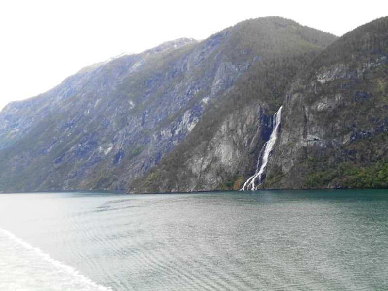 Flåm ist der Endpunkt des Aurlandsfjords, der wiederum ein Seitenarm des Sognefjords ist. Berühmt ist Flåm für die Flåmsbahn, die ich jedoch hier nicht beschreiben möchte. Mein Augenmerk möchte ich auf die atemberaubende Natur richten, die mit dem Nærøyfjord seit 2005 als UNESCO Weltnaturerbe seine berechtigte Auszeichnung bekommen hat. Die steilen Felswände rechts und links des Fjords, die bewaldeten Flanken und die einsamen Bauernhöfe weit oben sind eigentlich nicht mit Worten auszudrücken. Erleben kann man diese Eindrücke z. B. bei einem Landausflug eines Kreuzfahrtschiffes. Den Ablauf dieses Ausfluges möchte ich hier beschreiben. Man steigt in Flåm auf ein Ausflugsboot, wird von zwei örtlichen Reiseleitern begleitet, die alles Wissenswerte auf Deutsch erklären. Man fährt den Aurlandsfjord entlang, vorbei an Aurland und Undredal, dann in den Nærøyfjord. An einem 500 m hohen Wasserfall vorbei, 17 km durch traumhaft schöne Fjordlandschaft bis Gudvangen. Umsteigen in einen Bus, Fahrt nach Stalheim, einem Hotel auf 300m Höhe mit herrlicher Aussicht. Dann die Stalheimskleiva hinunter. Steil, eng, 13 Haarnadelkurven, kaum zu glauben, dass diese Straße bis vor einigen Jahren noch in beide Richtungen befahren wurde. Wieder vorbei an Gudvangen, durch zwei Tunnel nach Flåm. Dauer des Ausfluges: 2 ½ Stunden bis Gudvangen, 1 ½ Stunden mit Kaffeepause in Stalheim bis Flåm. Kosten: 79,-- €
