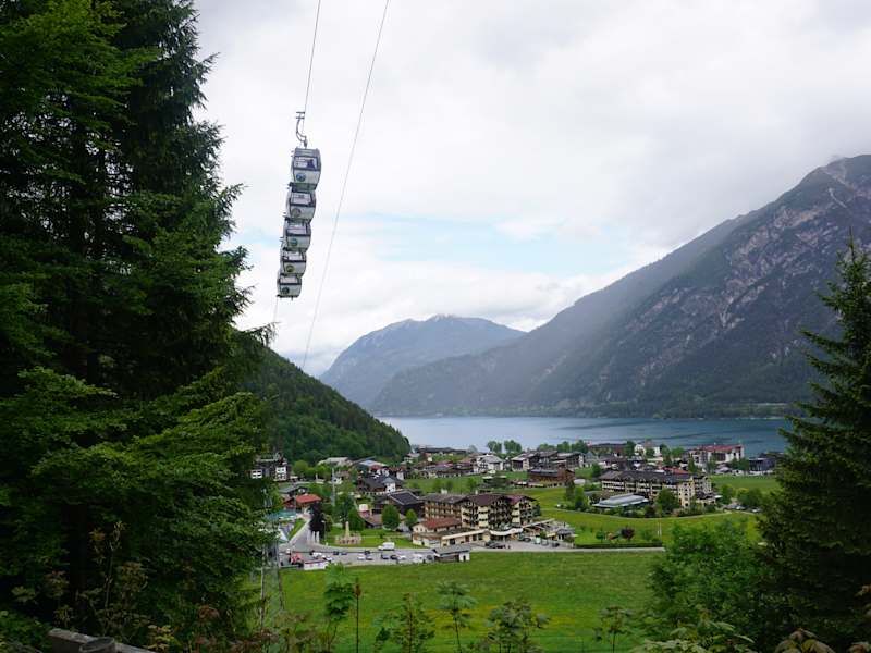 In Pertisau Achensee kann man die Aussichtsplattform erkunden, Eintritt wird dort nicht verlangt, Parken kann man vor Pertisau, hier unbedingt Ticket ziehen. Die Plattform ist 14 Meter hoch, massive Stahlkonstruktion mit schweren Holzbalken, am Abend beleuchtet. Die Aussicht gewaltig und es lohnt sich ungemein. . Adresse: Pertisau 6213 Österreich