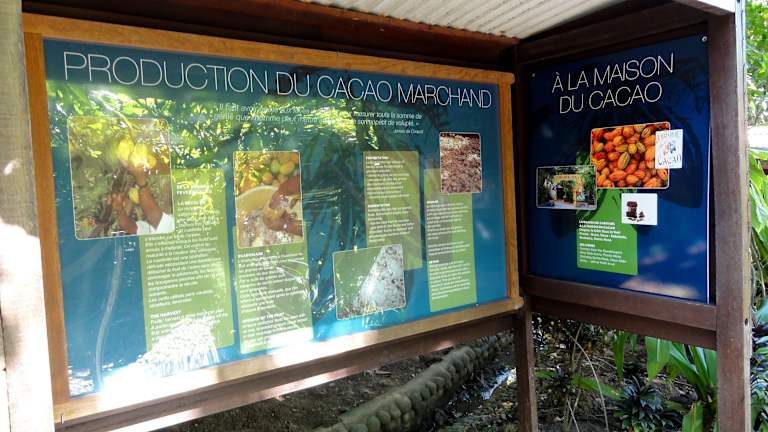 Bei der Fahrt durch den kleinen Ort Pointe Noire auf Basse-Terre wurde ich durch ein Hinweisschild auf das „Maison du Cacao“ an der Nationalstraße aufmerksam. Gegen ein Eintrittsgeld von 6 Euro (Stand 11/2014) bekommt man die Möglichkeit, durch ein kleines Gartenareal zu spazieren und dabei eine reichliche Anzahl an Kakaobäume mit ihren Früchten „hautnah“ zu besichtigen. An überall verteilten Informationstafeln lernt man alles über die Geschichte, den Anbau und seine Verarbeitung kennen, um anschließend im Empfangsgebäude den Höhepunkt zu erleben: Die Verkostung von Schokolade, Roh-Kakao und einem unglaublich gehaltvollen Schokoladengetränk, dass heiß in kleine Becher gefüllt wird. Dabei muss man die freundliche Dame am Ausschank gar nicht groß fragen, denn eigeninitiativ geht es in einem Parforceritt durch alle Aspekte von Produktion, Märkten und globalen Zukunftschancen. Wer mag, kann aus dem grandiosen Schokoladen-Sortiment des „Maison du Cacao“ noch einkaufen, wobei ich mich frage, ob diese Souvenirs wirklich den Transfer durch die Tropenhitze des Urlaubs unbeschadet überstehen. Aus diesem Grund habe ich mich bei einer Tasse Kakao in dem kleinen, angegliederten Café zu einem „Vor-Ort-Verzehr“ gezwungen – eine kalorienreiche Entscheidung mit großem Wohlfühlfaktor… Im Fazit: Für Schokoladen-Liebhaber lohnt sich der Besuch des „Maison du Cacao“ ohne Frage, würde aber auf meiner Prioritätenliste bei der Erkundung Guadeloupes nicht unbedingt einen Spitzenplatz einnehmen.