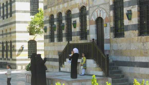 Der Azem Palast befindet sich im Herzen der Altstadt von Damaskus, südlich der Omaijaden-Moschee. Das damaszener Haus mit schlichter Fassade aus Schichten schwarzen Basalts und weißen Kalksteins und prunkvoller Innenausstattung wurde 1749 fertiggestellt. Erbaut wurde der Palast für den Gouverneur von Damaskus. Heute befindet sich in dem Gebäude das Museum für Volkskunst und Traditionen. Vom großen Haupt-Innenhof mit Springbrunnen und Garten sind die verschiedenen Räume zugänglich (Empfangs-, Harems-, Bade-, Musikräume), die mit alten Möbeln, Geräten, Werkzeugen, Instrumenten, Trachtenpuppen, mit farbigem Mamor verzierten Wänden über Türen und Fenstern, bunten, geschnitzten Decken und schweren Brokatstoffen ausgestattet sind. In einem Nebentrakt befinden sich die Wirtschaftsräume. Der Azem Palast bietet einen interessanten Einblick in das Leben der Türken-Zeit und ist eine Oase der Ruhe und Entspannung.