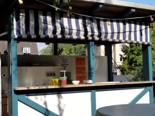 Gemütliche Kneipe im Vorderen Westen. Bei schönen Wetter lockt der Biergarten und der Grill im Biergarten wird in Betrieb genommen.