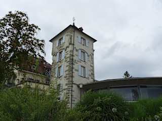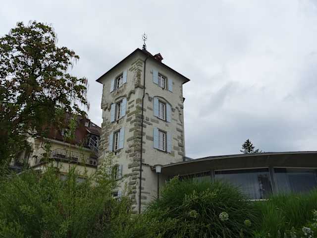 An der Seepromenade fällt einem eine historische Sehenswürdigkeit auf - ein fünfgeschossiger, quadratischer Turm auf. Hierbei handelt es sich offenbar um ein Überbleibsel der früher parallel zum See verlaufenden Stadtmauer, welche Mitte des 19. Jahrhunderts zugunsten des Uferwegs abgerissen wurde. Wenn man heute die Promenade entlang flaniert, kann man sich kaum vorstellen, dass der Blick auf den See einmal durch eine Stadtbefestigung verwehrt war.
