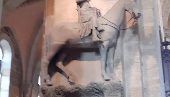 Die aus dem 13. Jahrhundert stammende Reiterstatue ist nach der Beschreibung die älteste erhaltene mittelalterliche Plastik eines Reiters, aber weder der Künstler, der sie geschaffen hat, noch der Herrscher, den sie darstellt, scheint bekannt zu sein. Zumindest gibt es so viele Deutungsversuche, dass man seine Zweifel an jedem einzelnen haben kann. Also erfreut man sich einfach an der schönen Figur, die im Dom steht.