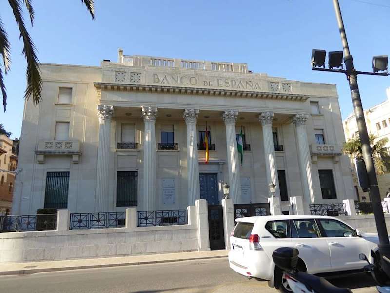 Die Banco de España in Malaga hat ihren Sitz in einem neoklassizistischen Gebäude an der Paseo del Parque zwischen dem Rathaus und dem alten Postgebäude. Das dreistöckige Bauwerk wurde nach den Plänen des Architekten José Yárnoz zwischen 1933 und 1936 errichtet. Highlight ist der Säulenportikus im korinthischen Stil an der Vorderfront des Bankgebäudes.