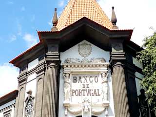 Das Bankgebäude der "Banco do Portugal" befindet sich an der Kreuzung Avenida Arriaga/Avenida Gonçalves Zarco. Das zweistöckige Bauwerk wurde in den Jahren 1937 bis 1940 nach den Plänen des Architekten Edmundo Tavares errichtet. Homepage: https://www.bportugal.pt/arquivo/details?id=16087