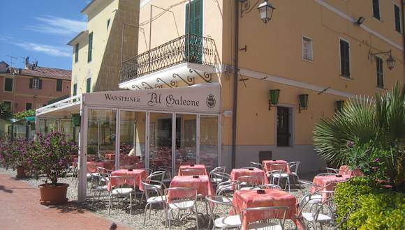 Das Al Galeone liegt an der Piazza Garibaldi direkt am Strand von Laigueglia. Hier kann man gemütlich sitzen und etwas trinken, z. B. einen Cappusino oder einen Wein, oder eine Kleinigkeit essen. Die Bedienung ist sehr freundlich.