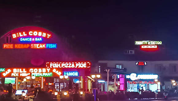 Bar Bill Cosby gibt es nicht mehr in Kumköy Das Bill Cosby viel dem Abriss zum Opfer, es ist jetzt von Side aus gesehen in Evrenseki auf der re. Straßenseite kurz vorm Hotel Side Crown Palace (etwas zurück gesetzt). Ausstattung: mit Bar / kinderfreundlich / mit Terrasse / Garten / mit Live Musik Die Bill Cosby Bar verdankt ihren Namen dem ehemaligen Chef, der immer wieder auf seine Ähnlichkeit mit dem amerik.Künstler (nur etwas hellere Ausgabe) angesprochen wurde. Sie liegt nur leicht versetzt gegenüber des Zuganges zum Papillon (ehem.Sol) Muna, vor dem ehemaligen Bazaar hinter Ilica Taksi. Sie bietet auf der geräumigen Terrasse bis Mittag ein sonniges, am Nachmittag ein schattiges Plätzchen, je nach Bedarf. Auch bei Regen kann man gut im Freien sitzen, da ein Grossteil der Terrasse überdacht ist,..gut für die Raucher. Die Bill Cosby Bar wird seit kurzem von einer sehr jungen, aber Gastronomieerfahrenen, Familie geführt, und bietet sich als Zwischenstopp beim Shopping, aber auch zu einem Besuch am Abend in sehr schöner Athmosphäre an. amca