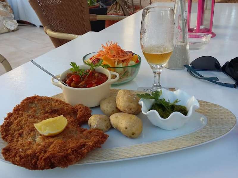 Ich habe hier das beste Schnitzel in sehr entspannter Atmosphäre und sehr nettem Service gegessen. Das Schnitzel Panko Style (knusprige Panade) und eingebackenem Ibérico Schinken ist ein Traum. Der Salat war frisch und fruchtig. Die in Meereswasser gekochten Kartoffeln mit Mojo ein würdige Beilage. Die Vorspeise hausgemachtes Alioli mit Brot und Oliven war so reichlich das ich am Ende nach einer anstrengenden Fahrrad - Tour extrem satt war. Leider habe ich das Restaurant erst am Ende meines Urlaubes entdeckt.