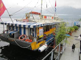 Die Bar liegt auf einem umgebauten Boot im Hafen von Locarno. Wir gehen seit vielen Jahren dorthin und das Boot hat viele andere Stammgäste. Früher fuhr man jeden Tag auf den See, heute nur noch am Wochenende gegen Aufpreis. Aber für einejn Aperitif vor dem Essen immer noch toll.