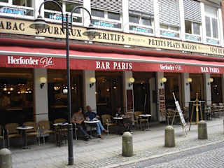 Die „Bar Paris“ liegt zwar etwas versteckt in der kleinen Pelzerstraße, aber dennoch mitten in der Innenstadt und ist ein „Pflichtprogramm“-Punkt für alle Liebhaber französischer Bistrokultur. Schon von der Straßenseite aus könnte man meinen, sich in der Metropole an der Seine zu befinden: Kleine Bistrotische, besetzt mit Menschen, die sich an der wirklich unattraktiven Nebenstraße im Schatten eines großen Kaufhauses und des zentralen Innenstadtparkhauses in keiner Weise dabei stören lassen, einen großen Café-au-lait zu genießen. Betritt man die „Bar Paris“, ist man wirklich in Frankreich angekommen – zahlreiche kleine Tische, weiß geflieste Wände, Bilder und Zeitungen, eine wohlsortierte Bar und ein Publikum, das diese Atmosphäre zu würdigen weiß. Bereits beim Studium der Speise- und Getränkekarte wird dem neuen Gast „warm ums Herz“ – Auf der Frühstücksseite konkurrieren frische Croissants mit ofenwarmen Brioche, werden Lachsteller und Omelettes angeboten und das warme Getränk darf nach Herzenslust frei kombiniert werden. Der besagte Milchkaffee kommt natürlich im klassischen Bol und von Stammgästen wird man nur dann „schräg angesehen“, wenn man sein Croissant NICHT in den Kaffee tunkt... Mittags und abends stehen, neben dem Tagesgericht, eine große Anzahl an Speisen zur Auswahl: Ob Penne „au Poulet“ (mit gegrillter Pouladenbrust, getrockneten Tomaten, Zuckerschoten, Basilikumpesto und Ruccola), Gemüse-Spinatauflauf (dick mit Käse gratiniert) oder „Baguette fromage“ mit warmem, zart schmelzenden Rohmilchkäse – die Küche hält, was sie verspricht! Preislich liegt die Bar Paris, gemessen an ihrer Leistung, eher im günstigen Bereich – zusammen mit dem extrem freundlichen und flinken Service der einzige Unterschied zu ihrem Pendant in Frankreich. Der Besuch ist mehr als lohnend!