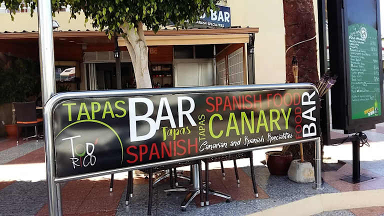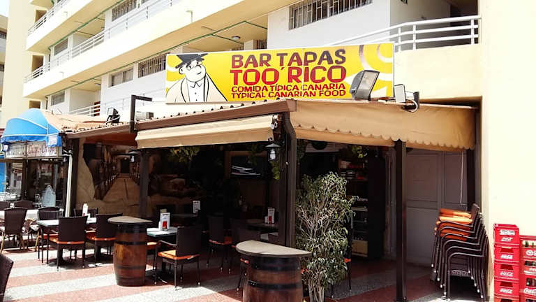 Exquisite Tapas, spanische und kanarische Spezialitäten im Herzen von Playa del Inglés. Anschrift Bar Tapas Too’ Rico Edificio Barbados I, Lokal 13 Avenida de Tirajana 19 35100 Playa del Inglés (Maspalomas) Las Palmas de Gran Canaria Spanien Internet www.toorico.es Kontakt Email: bar@toorico.es Telefon: +34 928 962 286 Reservierung: www.toorico.es/reservierung