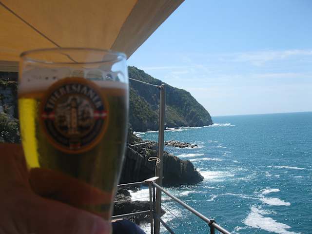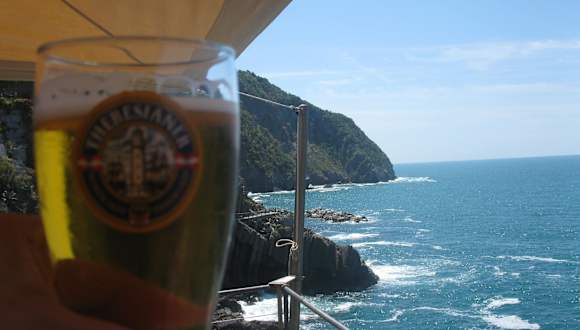 Direkt am Beginn des Küstenwanderwegs Via DellÁmore liegt die Bar Vini “A Pié de Mà”. Von hier aus hat man einen grandiosen Blick auf die ligurische Küste und das Meer und kann sich vor der Küstenwanderung nochmal stärken.