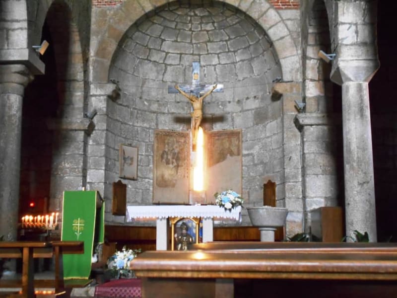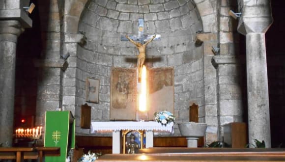 Die Innenwände sind in Naturstein belassen, Dekorationen sind spärlich. Trotzdem strahlt die Kirche eine angenehme Atmosphäre aus.