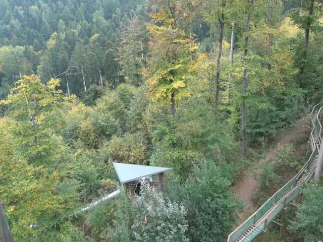 Vom Parkplatz geht es an einem See vorbei zum Sinnesweg. 1.200 m geht es sehr steil bergauf, an vielen Informationen vorbei. Auf der 250 Meter langen Konstruktion geht man übern den Baumkronen des Schwarzwaldes vor zum 23 m hohe Punkt. Von dort hat man einen schönen Ausblicke nach Waldkirch, ins Elztal sowie Richtung Freiburg. Eine weitere Attraktion im Naturerlebnispark ist Europas längste Riesenrutsche.