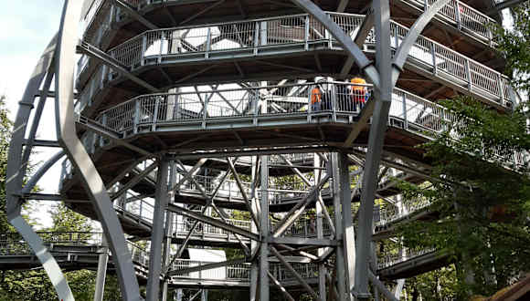 Interessanter Baumwipfelpfad in ca 25 Meter Höhe, mit informativen Infopunkten auf der Strecke mit einem schönen Ausblick aus der Baumkronenperspektive!