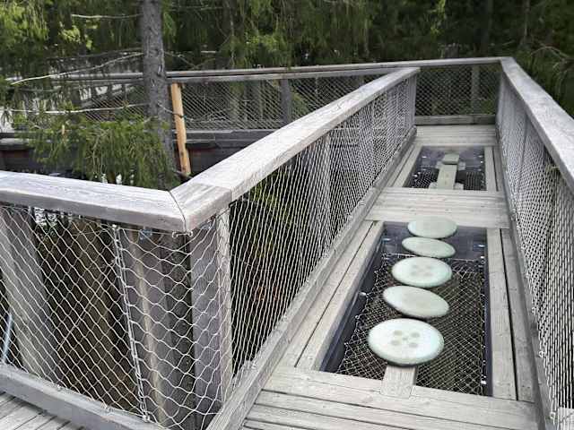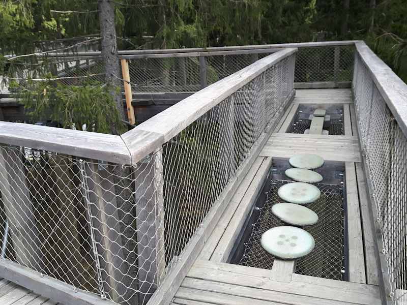 Wir (3E+2K) hatten zu fünft mit Hoch- und Runterfahrt incl. Registration (günstiger) gebucht. Der Weg zum Turm (ca. 300 m etwa 15 m überm Boden) war ganz nett und mit ein paar Balancebereichen ausgestattet. Entlang zur Turmspitze gab es ein paar Fragen zum Beantworten und Vogelbilder mit Vogeleiern zu sehen, ganz oben Vogelstimmen zu hören. Das wars dann auch schon und die Rutsche runter war gesperrt, da kurz vorher Regen. Das hat uns alle echt enttäuscht, man hätte doch den Auslaufbereich trocknen können. Das Ganze war echt keine 64 Euro wert.