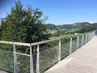 Toller Baumwipfelpfad mit super Aussicht. Man kann hier oben entlang laufen, hat aber auch die Möglichkeit am Boden kostenlos zu laufen. Hier gibts dann auch einen Spielplatz für Kinder. Wer aber in den Wipfeln laufen möchte, zahlt einen Eintritt von 15 CHF. Parken war vor Ort kein Problem.