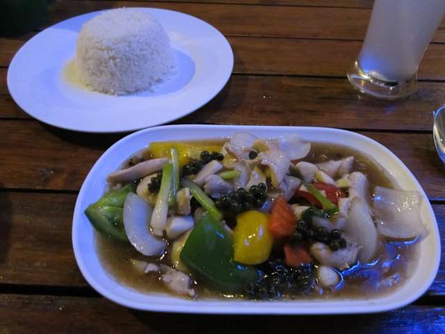 Das Restaurant liegt sehr günstig direkt neben dem Millenium Hilton, so dass alle "Fussfaulen" schnell einen Platz zum Essen finden. Auch wir haben uns am 15.5. zum Abendessen ins Be My Guest gewagt. Wir bestellten zwei Vorspeisen und zwei Hauptgerichte: - frittierte Schweinerippchen mit schwarzem Pfeffer - frittiertes Schweinefleisch - Spareribs mit Chili-Sauce - gedünstete Garnelen mit Gemüse in Chili-Kokosnusssauce. Wir bekamen alle vier Gerichte von vier verschiedenen Servicekräften ohne jegliche Erläuterung in einem Zeitraum von 20 min auf den Tisch gestellt. Nachdem von den Servicekräften keiner die Frage nach Reis stellte, haben wir dann noch ein Portion Reis bestellt. Wie auch beim Bier wurde hier sofort wiederholt: "Two Rice" was wir jedoch wie beim Bier ablehnten, da man sich einfach einen zweiten Reis bestellt, wenn der erste alle sein sollte. Wie auch ein evtl. zweites Bier nur warm steht. Zumal in diesem Etablissement zum Bier auch kein Cooler oder Isolation gereicht wird. Zurück zum Essen. Die frittierten Schweinerippchen mit schwarzem Pfeffer bestanden aus zerhacktem Knochenbruch, der schwarz ausfrittiert war. Das frittierte Schweinefleisch wurde als stark gewürztes Hackfleisch in Frikadellenform geliefert - außen schwarz und innen rose. Die Spareribs mit Chili-Sauce bestanden aus den abgetrennten Fett-Knorpel-Enden von spareribs, die durch eine verdünnte geschmacksarme Chilipampe gezogen waren. Die Zwiebeln und Paprika waren frisch und angenehm durch. Die gedünstete Garnelen mit Gemüse in Chili-Kokosnusssauce waren extrem unterkühlt im Ganzen zerhackt auf dem Teller, so dass zwar der Kopf entfernt war, aber der Darm und Innereienbeutel sichtbar zu Tage traten. Darauf kaltes Gemüse um das Elend zu verdecken. Die Sauce bestand aus einer Fett-Sauren-Brühe (definitiv ohne Kokosnuss!). Der Reis war das beste am Essen. Auch das mittlerweile zweite Bier wurde ohne Cooler serviert und war nur leicht angekühlt. Innerhalb weniger Minuten war dieses jenseits der Trinktemperatur. Auf der Speisekarte fanden wir eine weitere Überraschung. Der Kübel Eis kostet hier - völlig unüblich für Thailand. Nachdem das Essen schon die erste unangenehme Überraschung war, genehmigte sich das Haus eine nicht angekündigte Servicecharge von 10%, die die erste Servierkraft als City-Tax, die zweite als Service-Tax und die dritte englisch-sprachige als "tip included" erläuterte. Da hier sowohl die zwei als Appetizer ausgewiesenen Gerichte, wie auch die Hauptspeisen jeweils um die 100 THB kosteten, wobei sich keine Portionsunterschiede erkennen ließen, und abschließend die Qualität des gelieferten nur als ungenüged beurteilt werden kann, können wir nur sagen: FINGER WEG! Wer im "Be My Guest" gute oder authentische Thai-Küche erwartet (und sowas auch schonmal vorher mal gegessen hat) wir hier definitiv enttäuscht werden. Wer außerhalb seines Hotels noch Alkohol konsumieren möchte, kann dies hier sicherlich bei der hervorragenden Live-Musik tun. Diese gute Sängerin mit Keyboard-Begleitung hat uns jedenfalls am Samstag-Abend den Aufenthalt erleichtert. In der Nähe gibt es sowohl auf dem kleinen Klongsan-Market als auch an der Strasse weitere Restaurants, die erheblich mehr Authentizität, bessere Fleischqualitäten und Herzlichkeit des Personals bei 30-50% der geforderten Preise des Be My Guest bieten. Hier ist besonders das Buffet Bar-B-Q, das für 129 THB ein super Essen geboten hat, zu empfehlen.