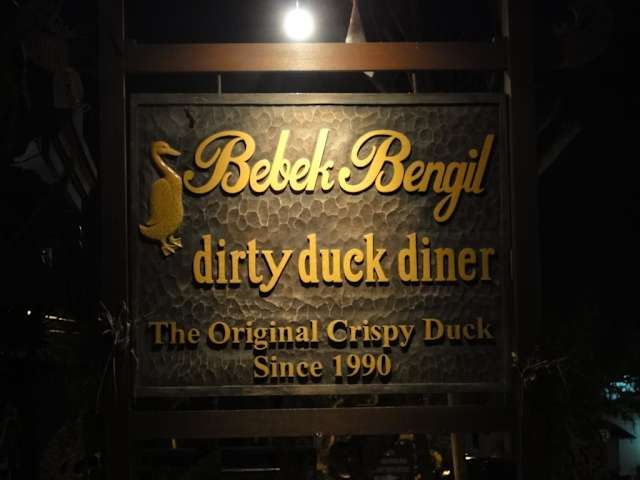 Eine sehr große und weitläufige Restaurantanlage. Schon am Eingang wird man in eine andere Welt entführt. Viele verschiedene kleine Essecken und Nischen auf verschiedenen Ebenen, durchzogen von einem kleinen Wasserlauf, vielen Pflanzen und romantische Beleuchtung überall verzaubern den Gast sofort. Verschiedenste Gruppierungen von Tischen jeder Größe fügen sich ein im großen Gelände an den Reisfeldern. Im einstöckigen Gebäude direkt an den Reisfeldern findet man in der oberen Etage auch größere Tische für Gruppen. Berühmtes Gericht für das Bebek Bengil (früher Dirty Duck Dinner) ist natürlich die knusprig gebratene Ente: wirklich lecker. Auf keinen Fall zu vergessen sind auch die interessanten und superleckeren Desserts (Schololadentorte: hmmmm!) Für Jeden, der das Dinner in romantischer Umgebung liebt, ist das Bebek Bengil genau das Richtige.